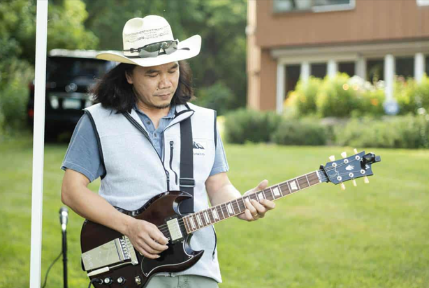 He no longer performs in an official band, but music remains an inseparable part of him. He enjoys connecting with others, bringing his gentle guitar sound to small Vietnamese community gatherings.