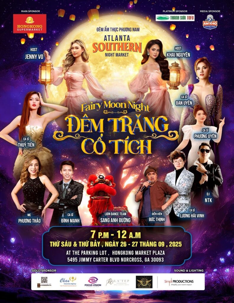 The event offers a vibrant Mid-Autumn Night Market with dozens of special food booths, lion dance performances, live music, lanterns, and many fun activities for children. It is a chance for the Vietnamese and Asian communities to celebrate Mid-Autumn with childhood memories, lively lion dance drums, sweet mooncakes, family togetherness, and traditional cultural beauty.